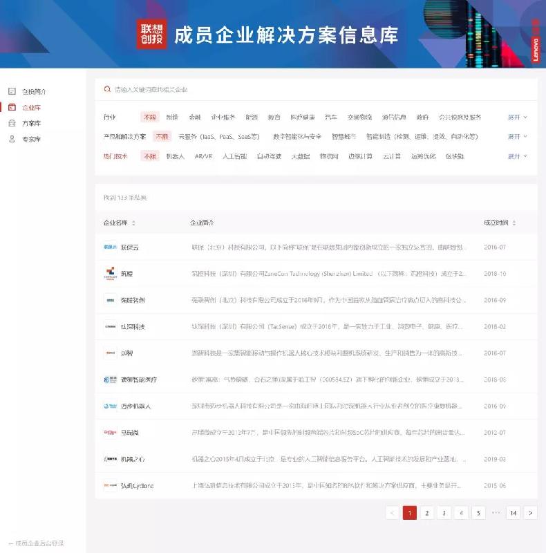 聯(lián)想創(chuàng)投成員企業(yè)解決方案信息庫(kù)