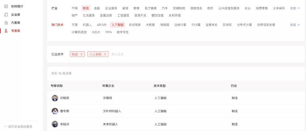 該數(shù)據(jù)庫(kù)覆蓋了聯(lián)想投資的160多家高科技成員企業(yè),包含每家企業(yè)的解決方案、服務(wù)客戶和專家信息,通過(guò)“技術(shù)”、“產(chǎn)品”和“行業(yè)”等多維度標(biāo)簽,可一鍵找到與客戶需求相匹配的方案和公司。