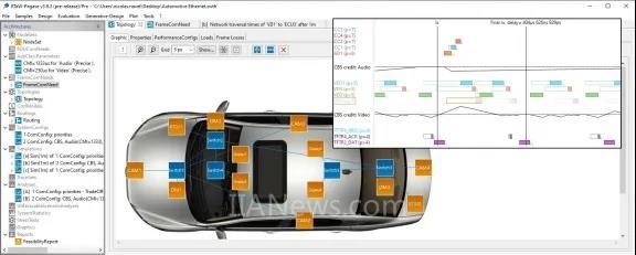 除此之外,加之汽車目前車載網(wǎng)絡系統(tǒng)可能還會有LIN總線、FlexRay、MOST等其他類型的總線。車載以太網(wǎng)的加入就會使得車載網(wǎng)路系統(tǒng)變得越來越復雜,那么在這種不可逆轉(zhuǎn)的大趨勢大背景下,我們該如何保證通信延遲以及多數(shù)據(jù)并發(fā)的時候依然能夠保證車載網(wǎng)絡架構(gòu)滿足功能要求呢?如何才能設計出一種安全的、最優(yōu)的車載異構(gòu)網(wǎng)絡系統(tǒng)呢?基于上述車載網(wǎng)絡日趨復雜的背景下,車載網(wǎng)絡工程師/架構(gòu)師急需一款專業(yè)并且功能強大的工具對初步的架構(gòu)設計結(jié)果進行客觀分析,并且能夠提供可視化的分析結(jié)果,從中獲取優(yōu)化車輛網(wǎng)絡架構(gòu)優(yōu)化的思路。為此,虹科的供應商RTaW(INRIA下屬公司)為汽車、航空等領(lǐng)域提供了實時網(wǎng)絡的仿真和配置工具RTaW-Pegase。