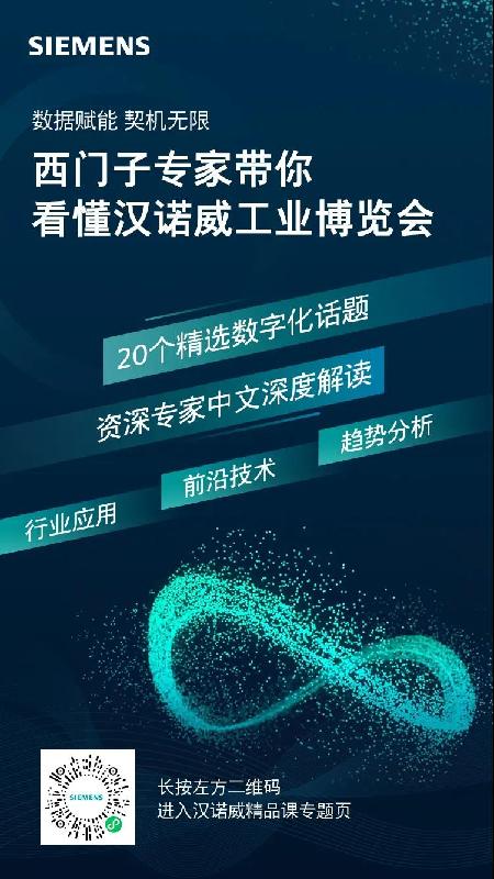 今年,西門子以虛擬方式參與漢諾威展,展出的數(shù)字化企業(yè)解決方案以及人工智能、邊緣計算等未來科技都將在中國市場大有可為,這與西門子多年扎根中國市場并持續(xù)努力的方向不謀而合。為了幫助中國本土客戶緊跟并抓住技術(shù)與行業(yè)趨勢,我們從70多場漢諾威主題演講中精選提煉出20節(jié)重磅詳解視頻,以更聚焦本地市場趨勢的角度,帶來工業(yè)風(fēng)向標(biāo)的本地解讀。