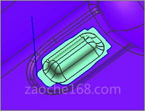 此處在設(shè)置分模線時(shí),是與A面輪廓形狀大致隨形,還是拉直,不對(duì)其做過(guò)多要求,產(chǎn)品轉(zhuǎn)角弧度及側(cè)整處產(chǎn)品邊界不同、工藝設(shè)計(jì)的不同,工藝補(bǔ)充也要隨之變化。轉(zhuǎn)角區(qū)域二次臺(tái)階深度設(shè)定越深,單向拉伸、則向轉(zhuǎn)角中心聚料現(xiàn)象越明顯,變形的可能性也會(huì)越大。在后續(xù)修邊角度及側(cè)整形允許的狀態(tài)下,可以加大一次臺(tái)階與二次臺(tái)階的側(cè)壁拔模角,與此同時(shí),增大凹模R角,前保、輪罩方向及轉(zhuǎn)角區(qū)域的阻力需同時(shí)加大,將進(jìn)料量控制到最小。