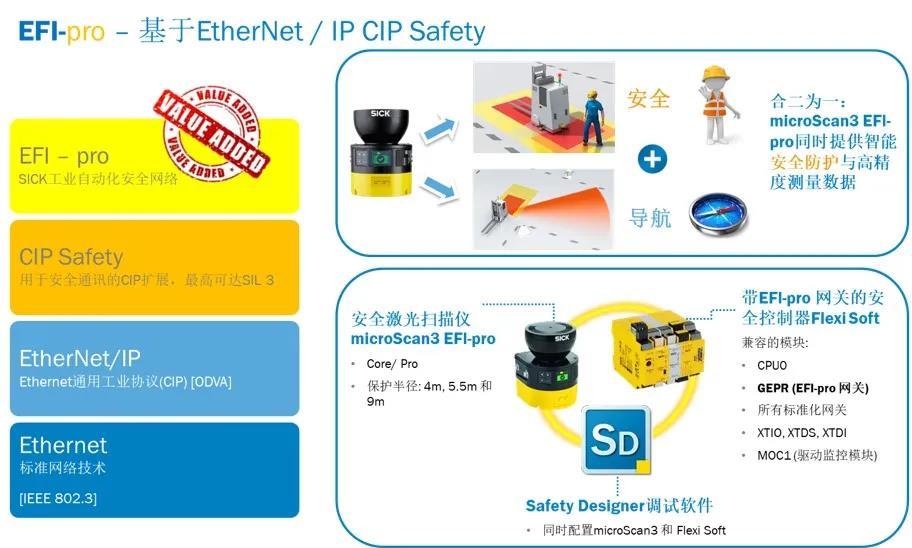 雖然EFI Pro安全系統(tǒng)基于Ethernet/IP CIP Safety,但因?yàn)槠溆掷^承了SICK相關(guān)的工業(yè)安全總線(xiàn)協(xié)議,附加的安全協(xié)議檢查和確保傳輸數(shù)據(jù)的完整性機(jī)制使得EFI Pro安全系統(tǒng)更高級(jí)更強(qiáng)大。相比EFI系統(tǒng),EFI Pro系統(tǒng)無(wú)論是在結(jié)構(gòu)上還是功能上都跨越了一大步!