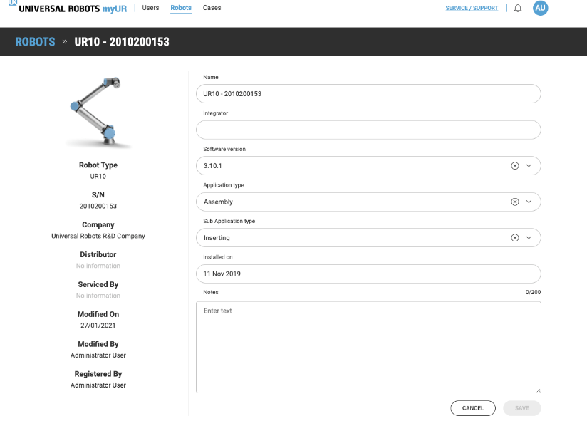 管理機(jī)器人信息,包含維修記錄、更新和應(yīng)用細(xì)節(jié); 獲得您所擁有/購(gòu)買(mǎi)的機(jī)器人的完整概述。