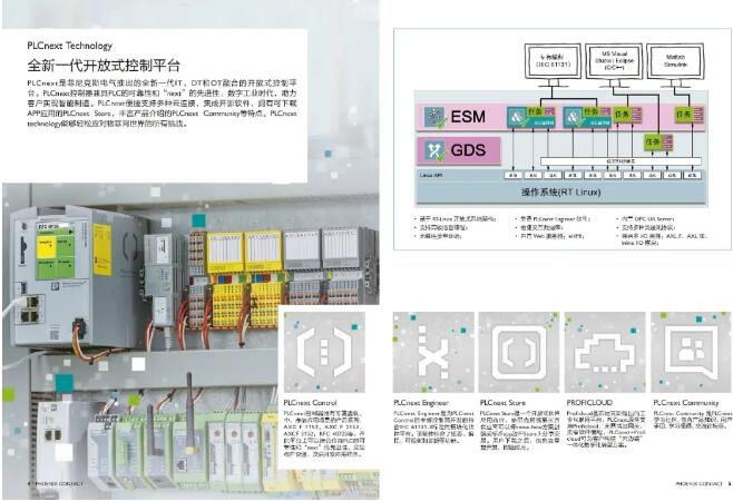 PLCnext是菲尼克斯推出的全新一代開放式控制器平臺。兼具了傳統(tǒng)PLC的穩(wěn)定性、可靠性與智能設備的開放性、靈活性。PLCnext從架構上來講有獨特的優(yōu)勢:它采用RT-Linux系統(tǒng)平臺,具有ESM(同步執(zhí)行管理器)和GDS(全局數(shù)據(jù)空間)兩大核心專利技術,實現(xiàn)不同來源的任務程序之間的同步調(diào)度執(zhí)行,并保證數(shù)據(jù)交互的一致性和實時性。用戶可選擇IEC61131-3和高級語言(如C++ C#)或模型語言(如Matlab Simulink)進行混合開發(fā),并且可以使用眾多的開源軟件和App。