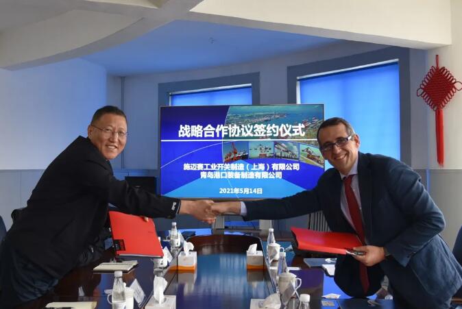 5月14日上午,施邁賽中國與青島港口裝備制造有限公司(以下簡稱“青島裝備”)戰(zhàn)略合作簽約儀式在青島港綜合樓舉行,雙方將在裝備制造、工程建設(shè)、技改維修、備品供應(yīng)多個(gè)領(lǐng)域合作發(fā)展。