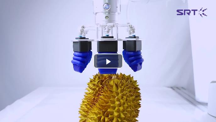 SRT自主研發(fā)的SFG系列夾爪,由食品級(jí)硅膠材質(zhì)制成,可以在保證抓取速度的同時(shí),實(shí)現(xiàn)對(duì)生產(chǎn)對(duì)象的無(wú)損抓取,其靈活的氣動(dòng)“手指”,可自適應(yīng)包覆住目標(biāo)物體,有效解決異形、易損物品的抓取搬運(yùn)難題。