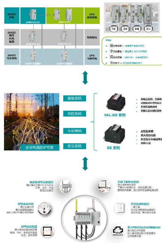 菲尼克斯電氣提供功能強(qiáng)大的QUINT系列電源可有效保障設(shè)備的安全輸出,專用的UPS、大功率電池為您的系統(tǒng)提供一個(gè)穩(wěn)定的、強(qiáng)大的供電保障;另配SEC系列電源類電涌保護(hù)器可有效防止電涌侵襲,保護(hù)配電系統(tǒng)免受瞬態(tài)過電壓的影響,附加智能雷電監(jiān)測系統(tǒng)可實(shí)時(shí)監(jiān)測系統(tǒng)運(yùn)行狀態(tài)。