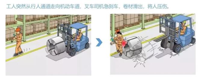 人機(jī)交互是當(dāng)前工廠自動(dòng)化趨勢(shì)。在搬運(yùn)重物的行進(jìn)路徑上不可避免的會(huì)遇到突如其來的障礙物或行人。當(dāng)遇到這種情況時(shí),傳統(tǒng)AGV由于路線較為固定,往往會(huì)停在原地等待,而叉車則需要減慢行駛速度,緩慢繞行,否則可能出現(xiàn)以下事故。