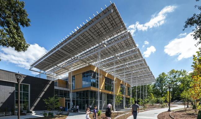 美國佐治亞州亞特蘭大的氣溫達(dá)到了約36攝氏度。這是一年中最熱的一天,美國南方腹地的空調(diào)都在全速運(yùn)轉(zhuǎn)。然而,在佐治亞理工學(xué)院校園的一棟大樓里,制冷系統(tǒng)并沒有啟動,室內(nèi)空氣卻依然涼爽,濕度也保持在舒適的水平。在悶熱難耐的夏天,這棟創(chuàng)新可持續(xù)設(shè)計(jì)的Kendeda大樓證明了它是美國東南部卓越的可持續(xù)建筑。