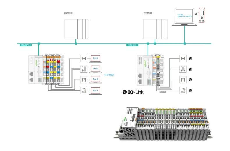 萬可IO-Link Master提供以上功能,還可作為模塊與WAGO-I/O-SYSTEM 750系列產(chǎn)品輕松集成,并與四臺不同IO-Link設備或標準數(shù)字量傳感器/執(zhí)行器同時相連。隨后,借助三線制連接將用于識別、配置和參數(shù)化的過程數(shù)據(jù)和非周期性數(shù)據(jù)傳送至相應設備。