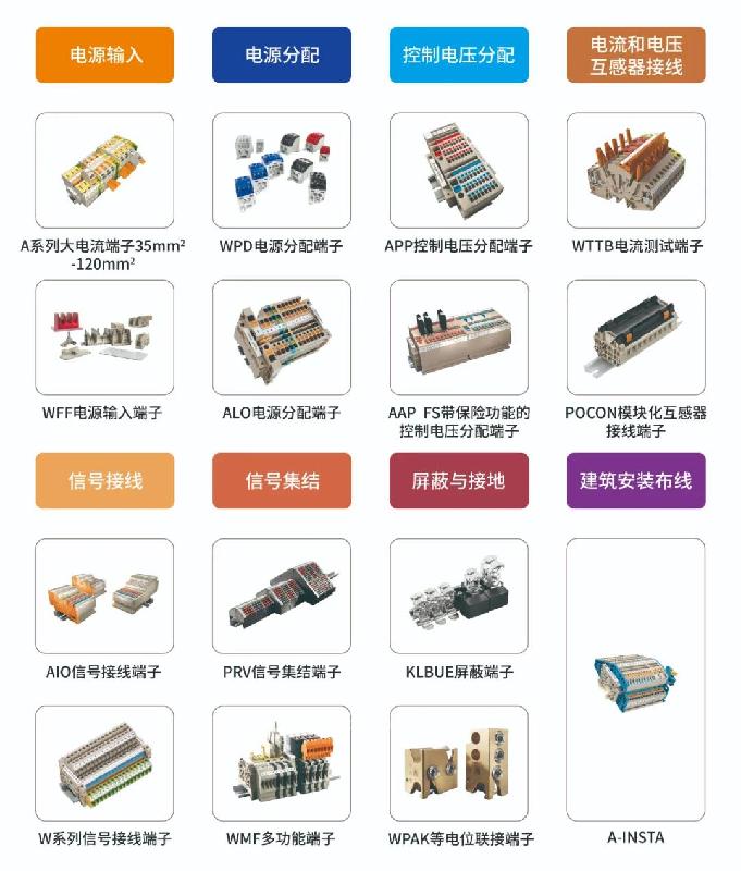 針對(duì)包括信號(hào)接線、電源輸入、電流電壓互感等在內(nèi)的各項(xiàng)功能,Klippon?Connect接線端子的產(chǎn)品種類齊全繽紛。