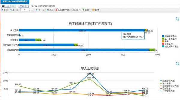??除了在系統(tǒng)中全方位管理維護(hù)工作的執(zhí)行,EMM系統(tǒng)的另一大亮點(diǎn),則是使用標(biāo)準(zhǔn)報(bào)表總結(jié)當(dāng)月維護(hù)工作,從不同維度分析設(shè)備、工單、人工時(shí)等數(shù)據(jù)。關(guān)鍵性指標(biāo)在系統(tǒng)中的展示一目了然,幫助工廠管理層直觀地了解工廠設(shè)備的維修維護(hù)情況,例如,報(bào)表會(huì)展示工廠前十大維修最多的設(shè)備、花費(fèi)人工時(shí)最多的區(qū)域和工廠平均故障恢復(fù)時(shí)間等。另一方面,總部管理層可將更宏觀層面的數(shù)據(jù)做橫向?qū)Ρ?,例如可查?個(gè)工廠的報(bào)修工單完成率、巡檢措施完成率、預(yù)防性計(jì)劃按時(shí)完成率等。工廠和總部不僅可以主動(dòng)去查詢報(bào)表,還可按用戶角色定期收到報(bào)表簡(jiǎn)報(bào)。諸如,工廠班組將收到昨天超過(guò)安全范圍的測(cè)點(diǎn)列表和現(xiàn)場(chǎng)主觀判斷嚴(yán)重的巡檢點(diǎn),總部領(lǐng)導(dǎo)會(huì)收到各個(gè)工廠昨日工作完成情況的指標(biāo)匯總等。