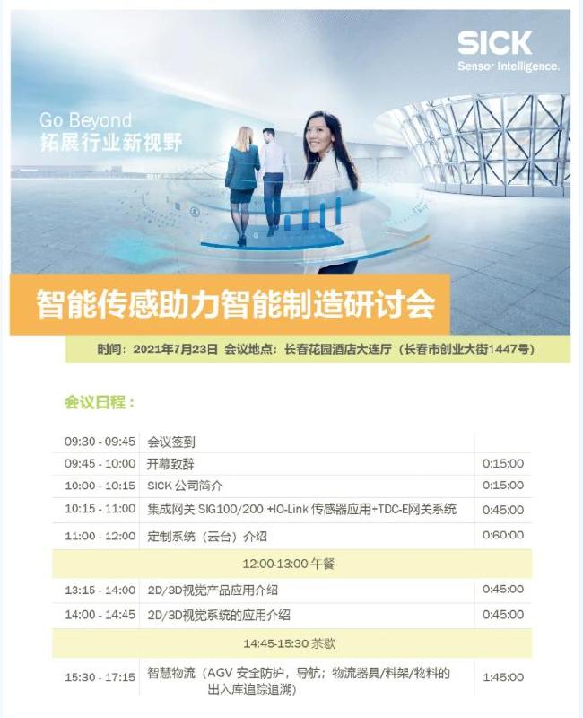 2021年7月23日, 西克本年度首場(chǎng)線下研討會(huì)來(lái)了。研討會(huì)將會(huì)圍繞當(dāng)前行業(yè)熱門話題 “ 智能傳感助力智能制造” 來(lái)進(jìn)行,其中 “智能傳感器“、”機(jī)器視覺(jué)“、” 定制化系統(tǒng)“ 及“智慧物流“四大主題我們將向客戶展示西克新的解決方案。突破傳統(tǒng)局限,為您的業(yè)務(wù)模型提供更好的流程和機(jī)遇。