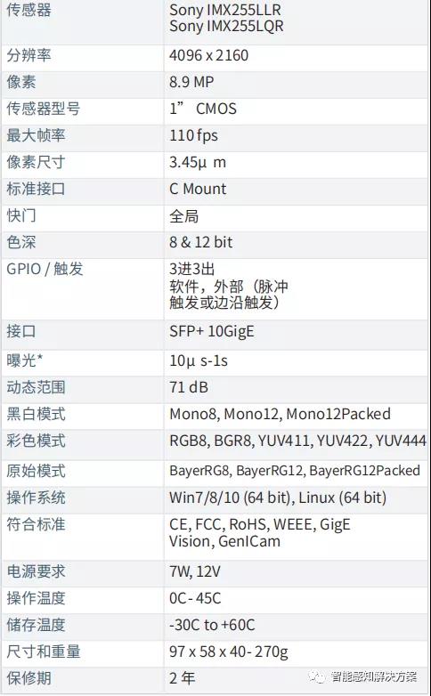 索尼Pregius IMX255傳感器,8MP 10GigE相機(jī)