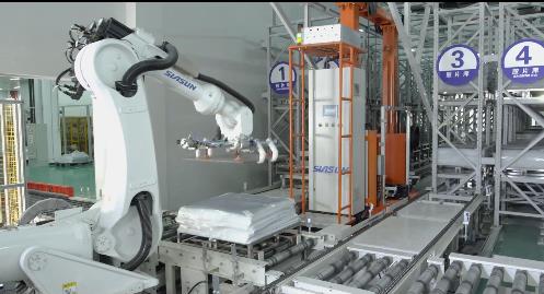 在一項(xiàng)又一項(xiàng)的創(chuàng)新突破中,新松與湖北華強(qiáng)攜手完成了丁基膠塞智慧工廠的整體布局,實(shí)現(xiàn)了生產(chǎn)、物流、倉(cāng)儲(chǔ)等全工藝環(huán)節(jié)的智能管控,達(dá)到了物流智能化、生產(chǎn)自動(dòng)化、產(chǎn)能最大化目標(biāo)。“綠色制造”也是該智慧工廠的一大亮點(diǎn),為實(shí)現(xiàn)提質(zhì)降本和循環(huán)利用,新松通過(guò)配備粉塵收集回用裝置大幅降低粉塵排放量,通過(guò)合理設(shè)計(jì)溫控系統(tǒng)和傳輸裝置結(jié)構(gòu)減少產(chǎn)品污染及原輔料消耗,通過(guò)膠片尺寸在線檢測(cè)技術(shù)減少膠料浪費(fèi)……據(jù)悉,該智慧工廠的落地運(yùn)行讓整體生產(chǎn)效率、運(yùn)營(yíng)成本、產(chǎn)品研制周期、能源利用率均有顯著改觀。
