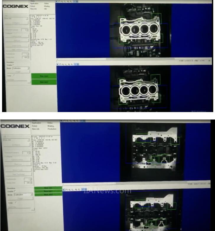 隨后工廠就安排了樣機(jī)的現(xiàn)場測試。在現(xiàn)場,康耐視代理商先把設(shè)備與機(jī)器人建立TCP通訊協(xié)議,并用早已準(zhǔn)備好的機(jī)器人通訊擴(kuò)展包進(jìn)行安裝,快速與康耐視設(shè)備進(jìn)行通訊。確定工作范圍之后,機(jī)器人就配合視覺進(jìn)行相機(jī)標(biāo)定,完成檢測程序開始測試。在缸體位置、角度、高度發(fā)生變化時,經(jīng)過視覺檢測后給出的修正坐標(biāo),可以精準(zhǔn)地引導(dǎo)機(jī)器人找到了定位孔,一下子就解決了困擾工廠許久的棘手問題。這讓現(xiàn)場試驗(yàn)的工程師們都驚喜萬分。高性價比的康耐視3D視覺解決方案憑借在現(xiàn)場測試中的出色表現(xiàn),讓EA211發(fā)動機(jī)工廠在綜合考量后果斷決定采用。