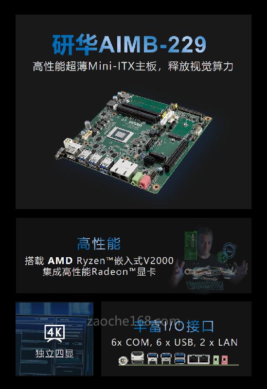2021年,中國·臺北-全球嵌入式計(jì)算供應(yīng)商研華科技宣布推出新品 AIMB-229 ,首款搭載AMD Ryzen?嵌入式V2000 系列處理器的超薄Mini-ITX 主板,外型緊湊(20 mm I/O 高度),支持獨(dú)立四顯,采用嵌入式 AMD Radeon? GPU,具有圖像運(yùn)算出色性能。