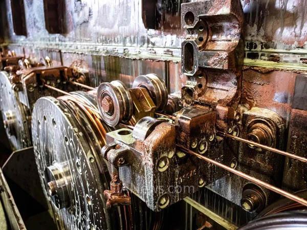 對于位于哈爾茨西部山腳下的電纜制造商,大部分能源被用于所謂的粗拉過程——拉絲操作的第一步;其下游是一個系統(tǒng),通過使用越來越窄的拉絲板的冷成型方法,將8毫米厚的銅桿拉成所需的橫截面。