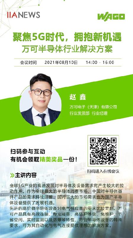 8月10日14:00-16:00,工業(yè)自動(dòng)化控制和電氣連接行業(yè)的專家——萬(wàn)可將從半導(dǎo)體制造前道工序硅片制造、中間核心工序晶圓制造、后道工序封裝檢測(cè)等工藝,為廣大半導(dǎo)體設(shè)備行業(yè)客戶帶來(lái)單晶硅爐解決方案、薄膜沉積解決方案、光刻機(jī)解決方案、刻蝕機(jī)解決方案以及清洗設(shè)備解決方案等多場(chǎng)景創(chuàng)新方案,滿足不同客戶所需。