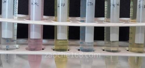 NMC和LFP消化液因其鈷或鐵含量而呈現(xiàn)顏色。由于運用了王水,隔閡涂層的消解液呈微黃色。