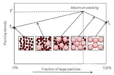 圖2:小顆粒和大顆粒的雙峰顆?;旌衔锏亩逊e密度