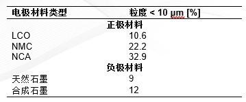 表3:用PSA法測(cè)得的電極材料中小顆粒的含量