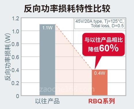 RBQ系列采用ROHM自有的勢(shì)壘形成技術(shù),實(shí)現(xiàn)了非常適合開(kāi)關(guān)電源的VF特性和IR特性之間的平衡。與ROHM以往產(chǎn)品相比,反向功率損耗降低了60%,可進(jìn)一步降低高溫環(huán)境下熱失控的風(fēng)險(xiǎn)。因此,該系列產(chǎn)品非常適用于需要在高溫環(huán)境中工作的汽車(chē)動(dòng)力系統(tǒng)和工業(yè)設(shè)備用的電源等應(yīng)用。