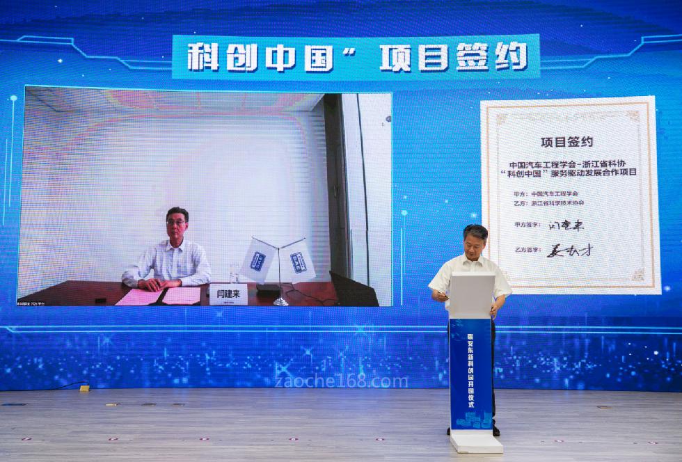 2021年8月4日,在瑞安東新科創(chuàng)園開園儀式上,中國汽車工程學會與浙江省科協(xié)就“科創(chuàng)中國”服務(wù)驅(qū)動發(fā)展合作項目進行了簽約,中國汽車工程學會副秘書長閆建來與浙江省科協(xié)一級巡視員姜長才在線上共同簽署了“科創(chuàng)中國”服務(wù)創(chuàng)新驅(qū)動發(fā)展戰(zhàn)略合作協(xié)議。