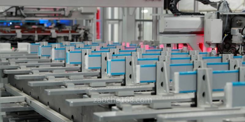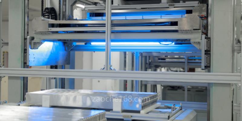 具體到刀片電池的疊片工藝,比亞迪將正極片、負極片,先模切裁斷成單片,在隔膜中按照設(shè)定的層數(shù)疊成極芯,并通過熱壓將極片與隔膜固定。極片長度約1000mm,條狀的正負極片,需要有序地插入折疊隔膜里,這對工藝要求是十分苛刻的——極片需要平整地插入,同時要保證插入的深度,需要剛剛好。