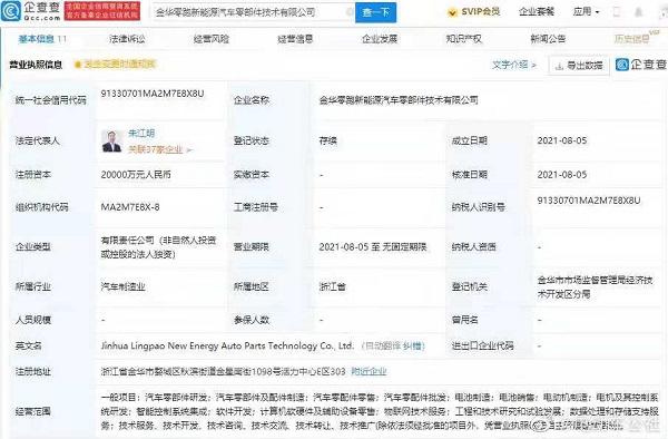 殊不知,就在今天,據(jù)企查查相關(guān)消息顯示,浙江金華零跑新能源汽車零部件技術(shù)有限公司成立,法定代表人為朱江明,注冊資本2億元人民幣,經(jīng)營范圍包含:電池制造;電池銷售;電動機制造;電機及其控制系統(tǒng)研發(fā);智能控制系統(tǒng)集成等。