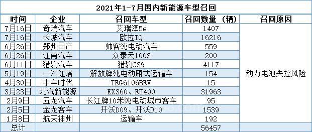 據(jù)統(tǒng)計(jì),今年1-7月我國(guó)新能源汽車共實(shí)施汽召回22次,涉及缺陷車輛約43萬(wàn)輛,其中因動(dòng)力電池存在失控風(fēng)險(xiǎn)而召回的事件占了一半。