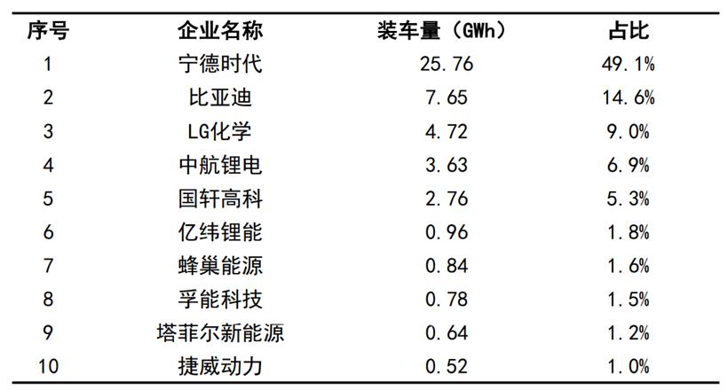 今年1-6月國(guó)內(nèi)動(dòng)力電池企業(yè)裝車量前十(圖片來(lái)源:中國(guó)汽車動(dòng)力電池產(chǎn)業(yè)創(chuàng)新聯(lián)盟)
