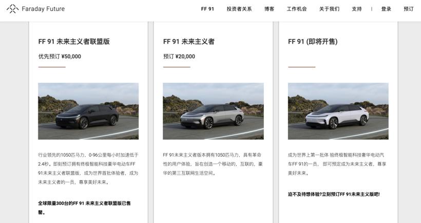 在FF上市的同時,堪稱“期貨”的FF 91的銷售也被提上了日程。