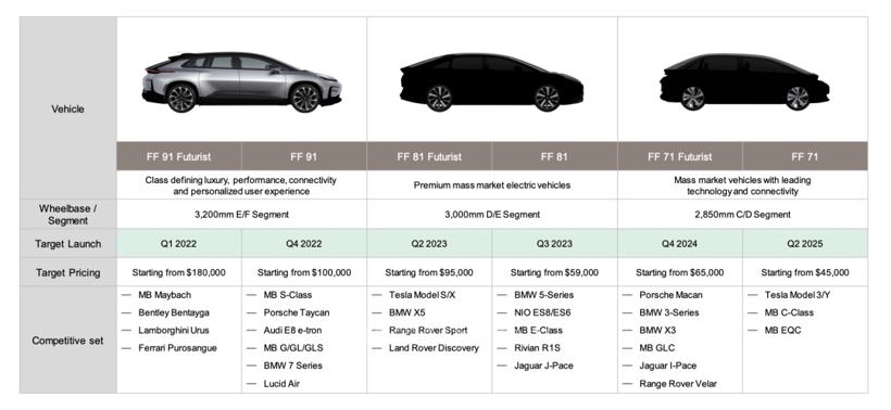 根據(jù)FF產(chǎn)品計劃,繼FF 91之后,第二款產(chǎn)品FF 81的兩個版本將于2023年Q2、Q3上市,之后在2024年Q4和2025年Q2,將繼續(xù)推出FF 71的兩個版本。