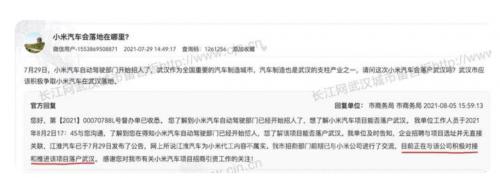 8月11日,據(jù)新浪財(cái)經(jīng)報(bào)道,近日,武漢市商務(wù)局通過“武漢城市留言板”渠道回應(yīng)市民提問時(shí)表示,武漢市招商部門前期已與小米公司進(jìn)行了交流,目前正在與該公司積極對(duì)接和推進(jìn)小米汽車項(xiàng)目落戶武漢。