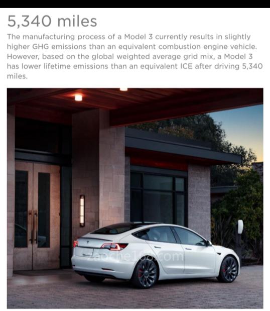 世人皆有共識(shí):純電動(dòng)車比燃油車的碳排放量會(huì)少很多。但是具體會(huì)少多少?除了科學(xué)界和專業(yè)人士外,大眾還是一片模糊。于是,特斯拉在報(bào)告中,用2個(gè)數(shù)字給出了更直觀的比較:首先是“69 噸”,這是基于美國(guó)2020年出售的燃油車來統(tǒng)計(jì),一輛燃油車平均在整個(gè)生命周期中排放的二氧化碳數(shù)量;另一個(gè)是“5340 英里”(約合 8594公里),因?yàn)榘∕odel 3在內(nèi)的純電動(dòng)車在生產(chǎn)過程中比同檔次的燃油車的環(huán)境排放略高,所以根據(jù)綜合數(shù)據(jù)測(cè)量,只要Model 3使用超過5340英里(約合 8594公里)后,整車生命周期的排放總量就會(huì)低于燃油車。