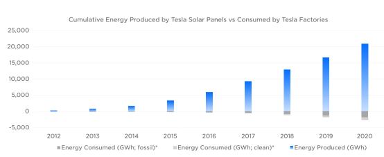 當(dāng)然,隨著電網(wǎng)變得更清潔,電動(dòng)車和燃油車全生命周期的排放差距會(huì)再次拉大。特斯拉從自身做起,截至目前,已經(jīng)在內(nèi)華達(dá)州超級(jí)工廠的屋頂上安裝了3,200KW容量的太陽能發(fā)電板,預(yù)計(jì)明年年底能實(shí)現(xiàn)24,000KW容量的太陽能發(fā)電板。并計(jì)劃在弗洛蒙特、紐約超級(jí)工廠內(nèi)都安裝更多的太陽能電池板。截至到2020年,特斯拉生產(chǎn)的太陽能面板累計(jì)生產(chǎn)了超過20,800GWh的清潔電力,是特斯拉自2012 年發(fā)布Model S以來,全公司累計(jì)消耗電力的數(shù)倍。另外,從特斯拉2020年儲(chǔ)能產(chǎn)品銷售額達(dá)到了3GWh,市占率達(dá)到約25%也可看出,特斯拉對(duì)清潔能源的重視和決心。
