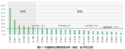 圖為:25座城市公用樁密度分布(單位:臺(tái)/平方公里)