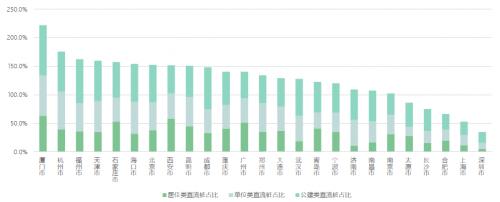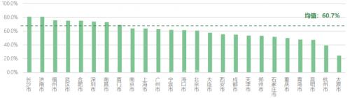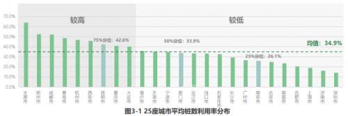 圖為:各城市平均樁數(shù)利用率<20%的公共樁點(diǎn)位比例