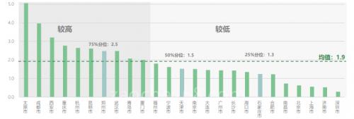 圖為:各城市樁均服務(wù)車輛數(shù)