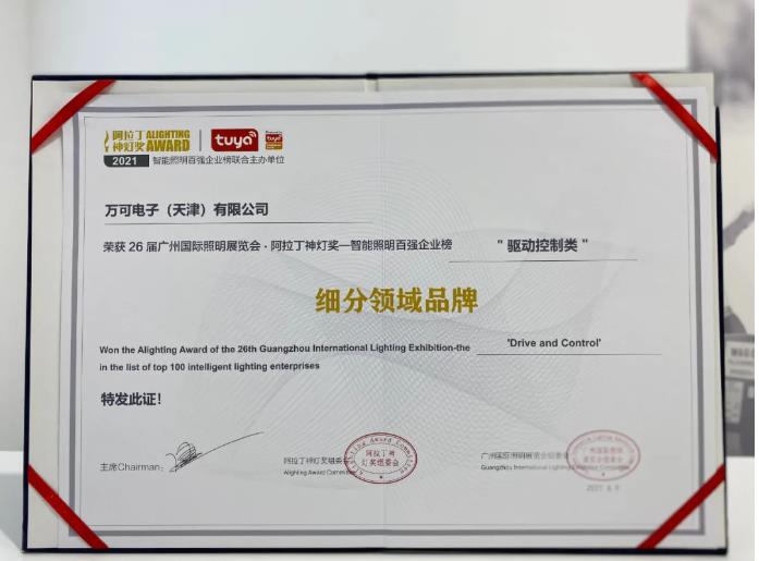 作為照明界奧斯卡獎(jiǎng)“阿拉丁神燈獎(jiǎng)”頒獎(jiǎng)典禮于8月3日在廣州照明展上隆重舉行。萬(wàn)可榮獲2021阿拉丁神燈獎(jiǎng)-智能照明百?gòu)?qiáng)企業(yè)榜“驅(qū)動(dòng)控制類(lèi)”細(xì)分領(lǐng)域品牌。