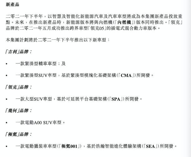 財報顯示,今年下半年,密集的推新節(jié)奏將得以延續(xù)。吉利品牌將推出一款緊湊型轎車、一款緊湊型SUV(基于CMA架構(gòu)開發(fā));領(lǐng)克品牌將推出一款大型SUV(基于可延展平臺基礎(chǔ)架構(gòu)SPA開發(fā));幾何品牌將推出一款A(yù)00級純電動SUV;備受關(guān)注的極氪001也在新車名單中。