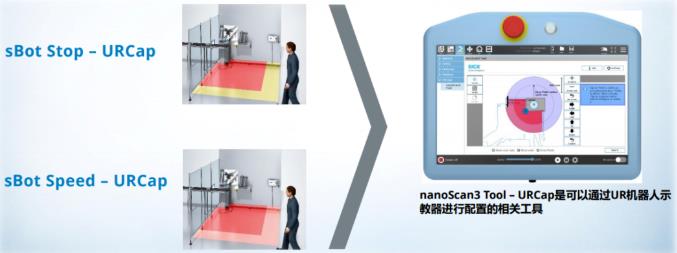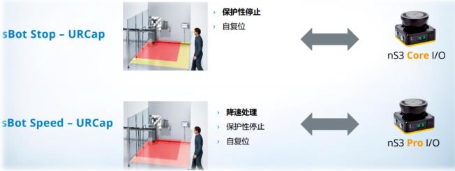 URCap安全系統(tǒng)包含兩種套裝,sBot Stop-URCap以及sBot Speed-URCap,基于應(yīng)用場景不同,分別配置了nanoScan3 core以及pro兩個(gè)版本。