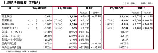 關(guān)于2021財年(2021年4月-2022年3月)的業(yè)績預(yù)測,電裝的營業(yè)收入或?qū)⑦_(dá)到5.54萬億日元,同步增加12.2%,營業(yè)利潤為4400億日元,同比上升83%,凈利潤目標(biāo)為3360億日元,較去年同期的2109億日元提升68.7%。