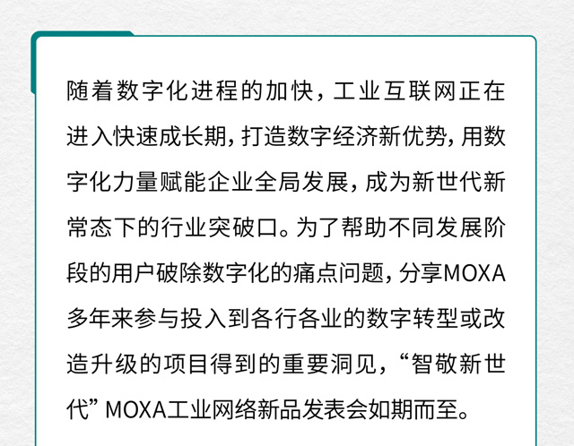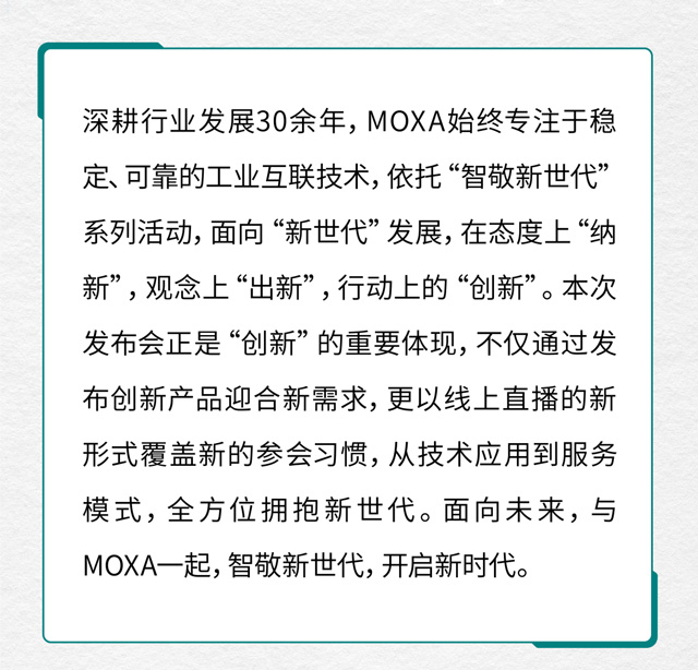 關(guān)于““智敬新世代”MOXA新品發(fā)表會(huì)圓滿落幕!”,填寫反饋