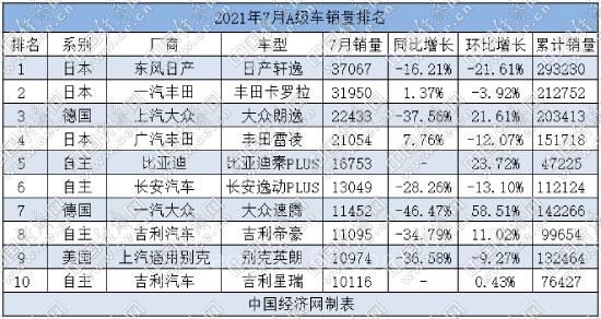 具體來看,上半年以大比分優(yōu)勢奪得半程銷冠的軒逸,7月再次以3.7萬輛的成績蟬聯(lián)月度冠軍。業(yè)內(nèi)人士表示,軒逸的智能化程度相對較低,受“缺芯”的影響較小,不過由此帶來的影響正逐漸顯現(xiàn)。軒逸當(dāng)月銷量同比下降16.21%,環(huán)比下降21.61%。