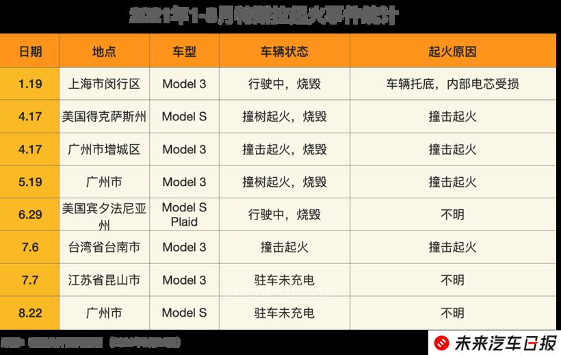 在2021年,除靜止?fàn)顟B(tài)起火外,特斯拉還因碰撞導(dǎo)致起火現(xiàn)象。