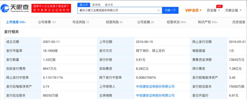 天眼查資料顯示,重慶小康工業(yè)集團(tuán)股份有限公司成立于2007年5月,注冊資本約12.7億人民幣,法定代表人為張正萍。公司經(jīng)營范圍含制造、銷售汽車零部件、電器機(jī)械;房屋租賃、機(jī)械設(shè)備租賃;經(jīng)濟(jì)技術(shù)咨詢服務(wù);貨物進(jìn)出口等。天眼查十大股東信息顯示,該公司第一大股東為重慶小康控股有限公司,占總股本比例34.22%。第二大股東為東風(fēng)汽車集團(tuán)有限公司,占總股本比例25.76%。
