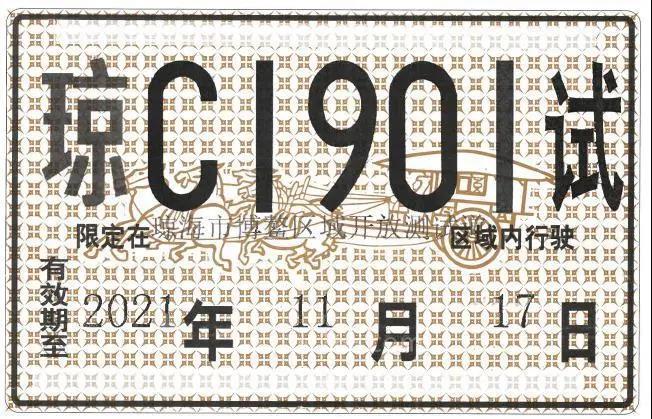 海南首張自動駕駛公開道路測試牌照,圖片來源:中國一汽