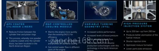 可變渦輪幾何形狀(VTG)。作為北美地區(qū)首批采用該技術(shù)的量產(chǎn)渦輪增壓器之一,這款渦輪發(fā)動(dòng)機(jī)效率更高,可以提供更高的增壓壓力,避免大量排放廢氣。